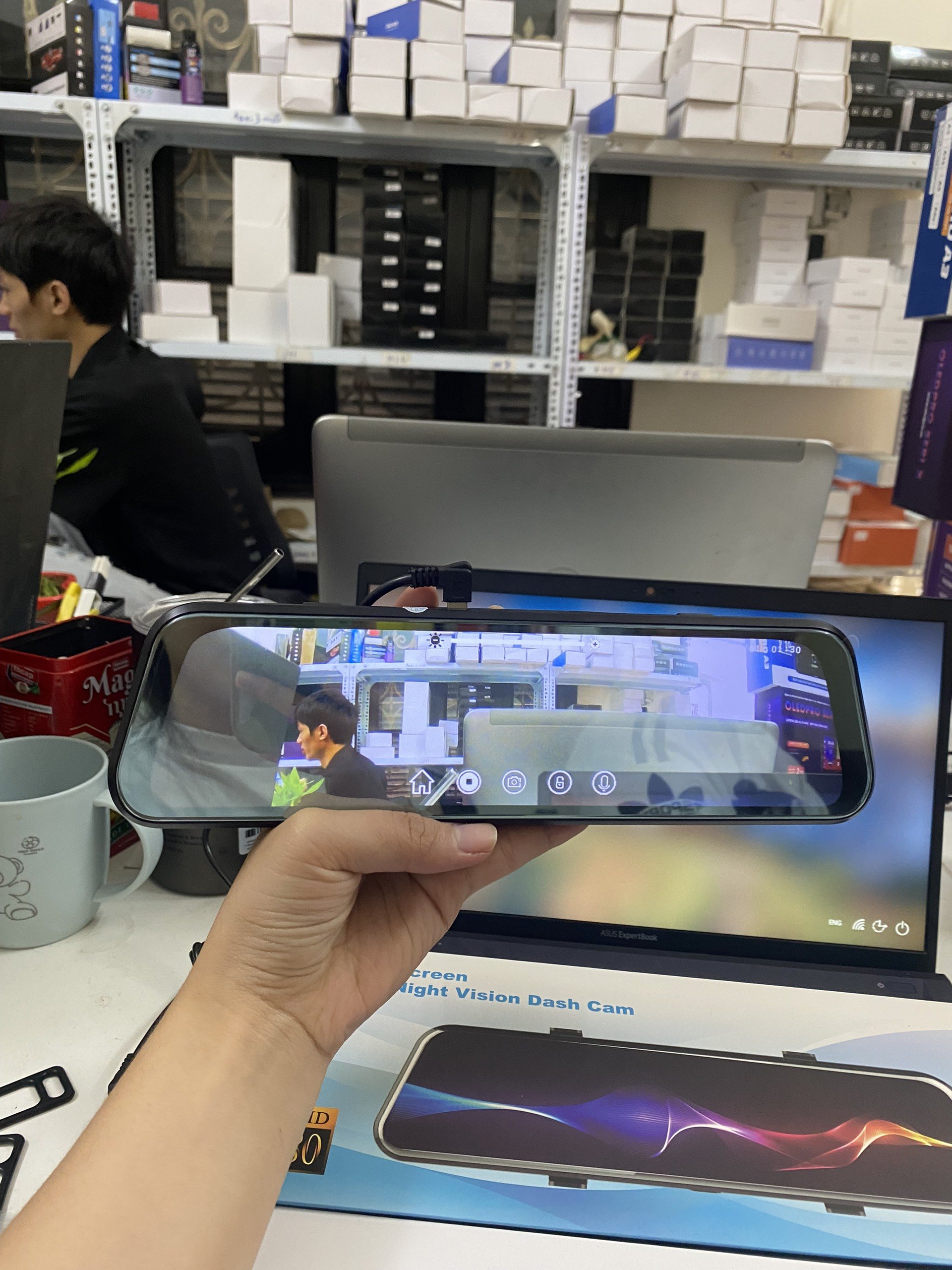 3-Thiết bị cho phép ghi hình trước và sau cùng lúc.Với màn hình lên tới 9.35′, camera có thể hiển thị cùng một lúc camera trước và sau dễ dàng, và chuyển chế độ quay chỉ cần 1 lần vuốt cảm ứng.